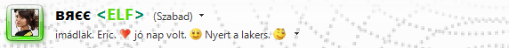 Gyorsan átírtam a személyes üzenetemet. El is mosolyodtam rajta. Odarohant hozzám Noel, mire gyorsan megnyitottam az internetet. Nem akarom, hogy megtudják. Még nem. És a kamerás dolgot meg pláne. 5 perccel később Eric is bejelentkezett, és megváltoztatta a személyes üzenetét.